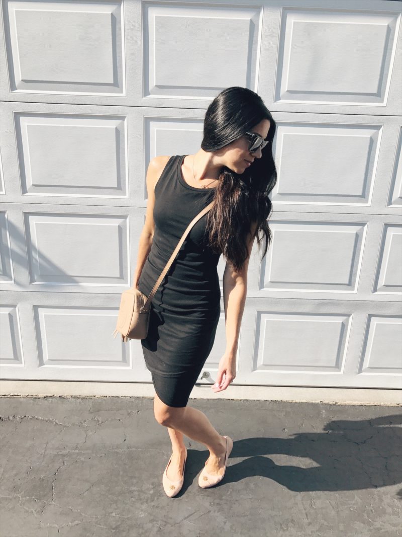 First of all the dress I am referring to is by Leith which you can find at Nordstrom’s. The fit is absolute perfection. It hugs the body in all the right places and the ruching really flatters the waistline. The tulip hem adds just enough detail too. I also love the variety of colors and the fact that it is only $56! It can easily be dressed up or down. You can see above that I am simply just wearing it with some flats for a comfortable everyday look.