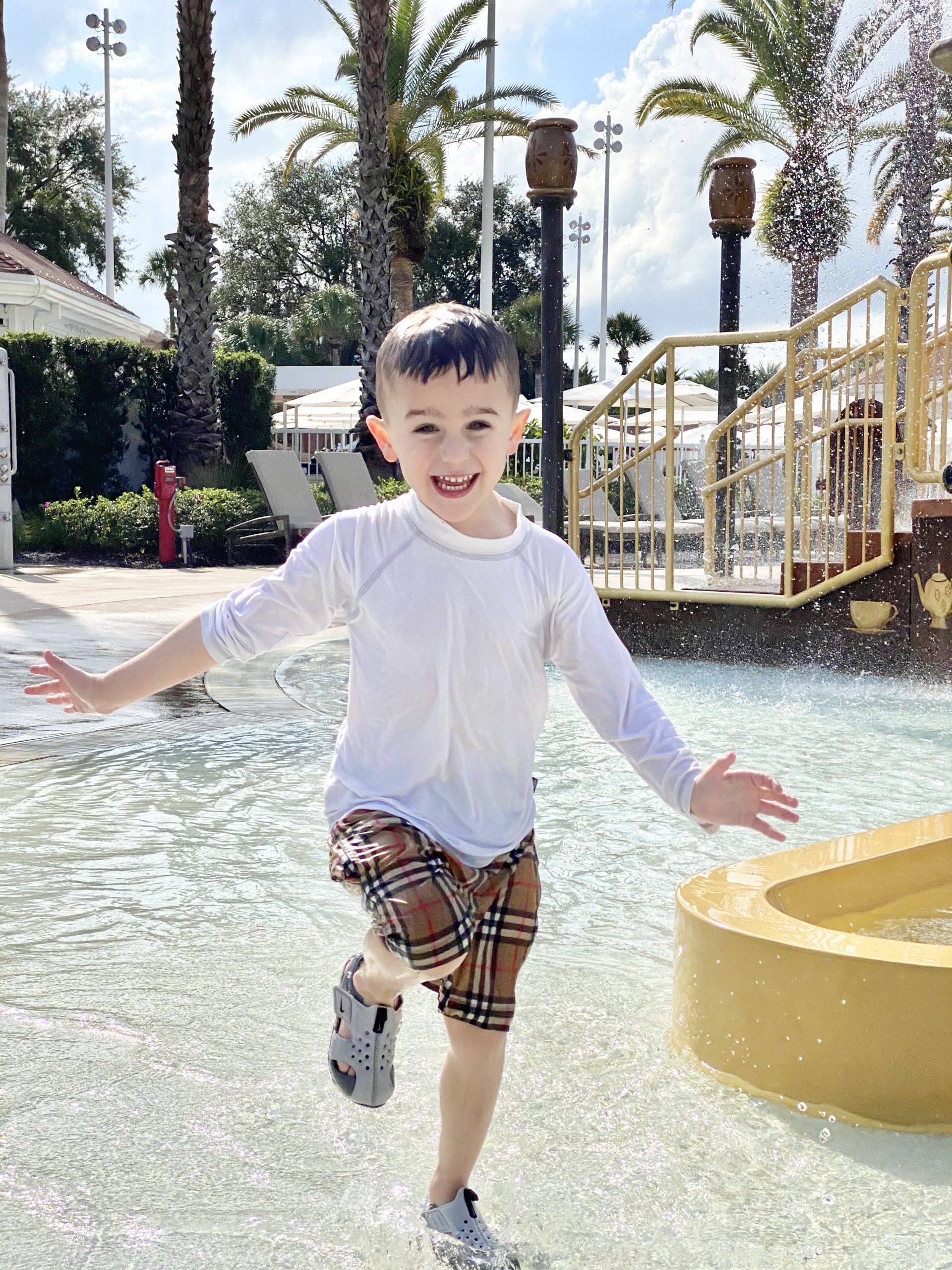 The past 6 times we have gone since having our family we have only stayed at the Grand Floridian. It’s funny because when I was little I use to walk by and think wow I would love to stay there one day. I feel so lucky to get to do that now. We stay there for many reasons. It is considered a Disney luxury hotel and it is just gorgeous. The restaurants are amazing. We personally love Citrico’s and Narcosee’s. Their adjustable shelving options for cool rooms is amazing. We love the pool and the kids love the splash pad too. They are 4 and 1 so we still use a double stroller and the convenience of the monorail makes it more then worth it to me. You can also take a boat to the Magic Kingdom but we have not done that yet.