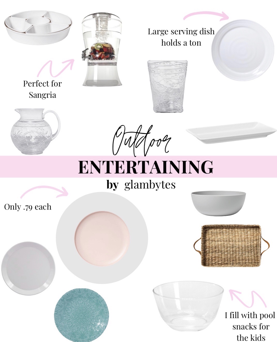 Are you one to entertain and have people over often? I shared our outdoor patio and pool area recently and because we love outdoor space so much we regularly entertain the most in the summer. It is also great to not have to clean the house after guests HA! This summer I bought a ton of new outdoor serving-ware that I have been using and loving that I wanted to share with you. They are all affordable, easy to clean, and durable. Here are my outdoor entertaining must haves.